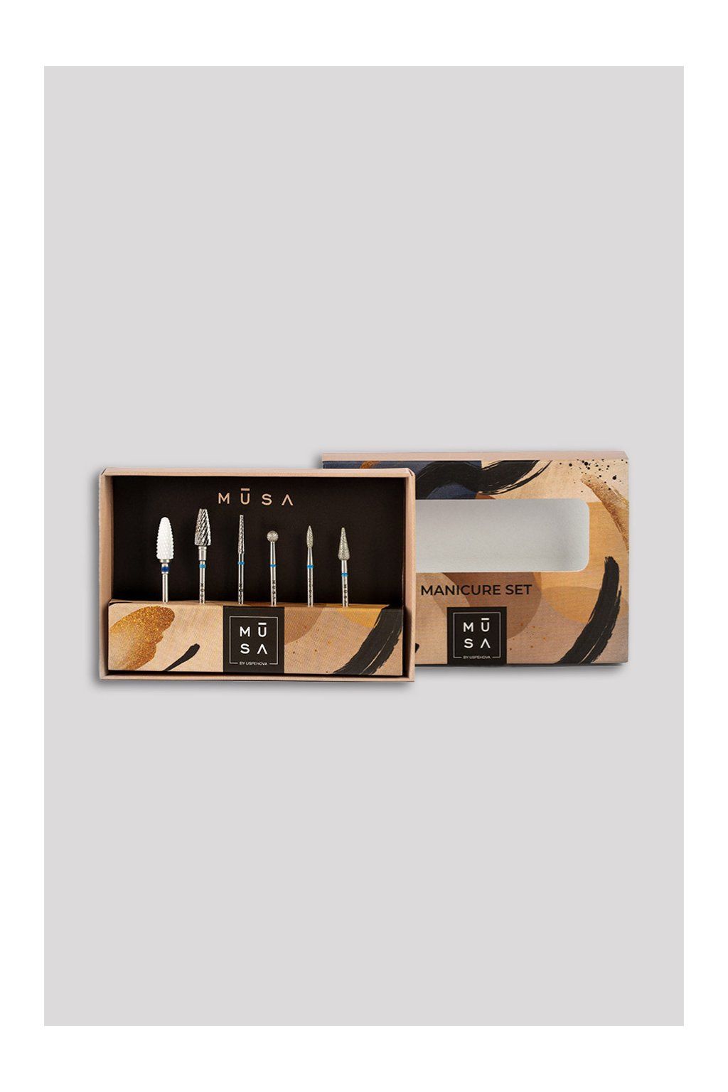 MANICURE SET MEDIUM je profesionálna sada fréz na manikúru, ktorá spĺňa potreby a požiadavky všetkých nechtových dizajnérov.
