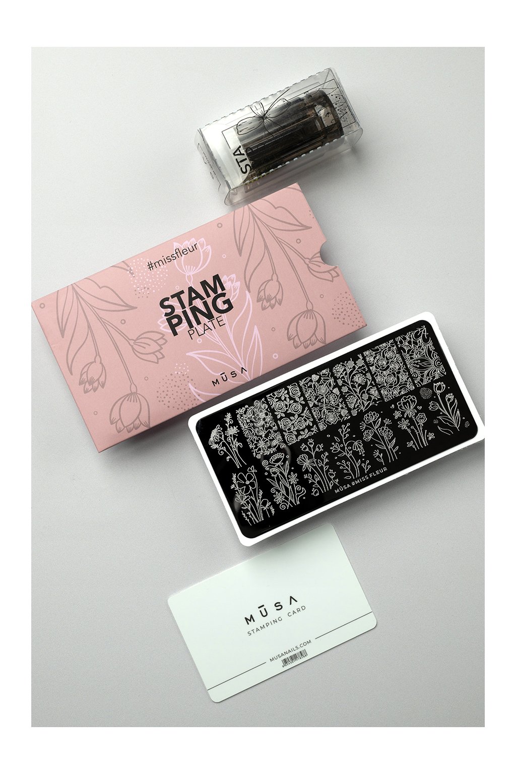 Súčasťou sady je stamping platnička vyrobená z nerezovej ocele, ktorá je odolná voči poškriabaniu a opotrebovaniu. Na nej nájdete širokú škálu elegantných a rôznorodých vzorov, ktoré sú ideálne pre jemné aj výrazné nail art dekorácie. Nechýba ani silikónová pečiatka, ktorá zabezpečuje bezchybný prenos vzorov na nechty, a špeciálna stamping karta, vďaka ktorej je možné rovnomerne naniesť farbu na platničku a odstrániť jej prebytok.