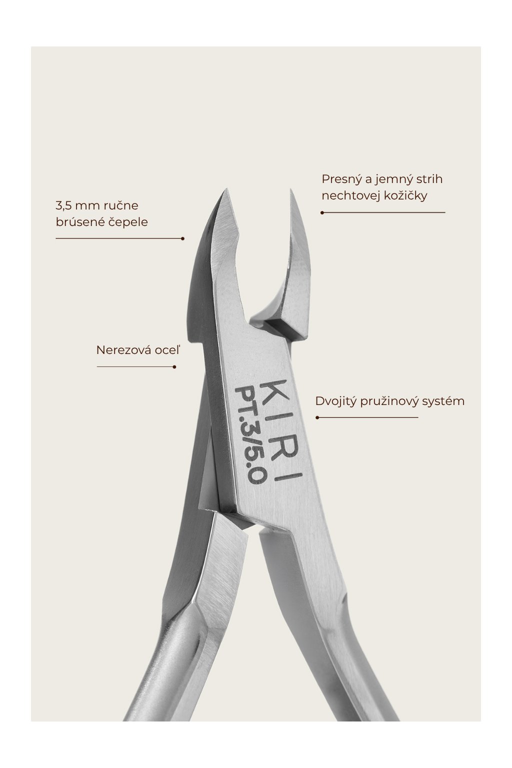 Predstavujeme vám PREMIUM CUTICLE NIPPER 3/5.0 - kliešte na kožičku s dlhou rukoväťou - ideálny nástroj na presné odstránenie prebytočných kožičiek. Tento nástroj je vybavený čepeľou s dĺžkou 3,5mm, ktorá umožňuje presný a efektívny strih.