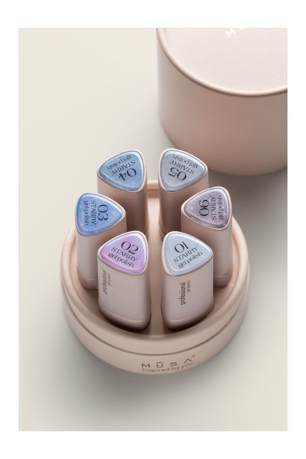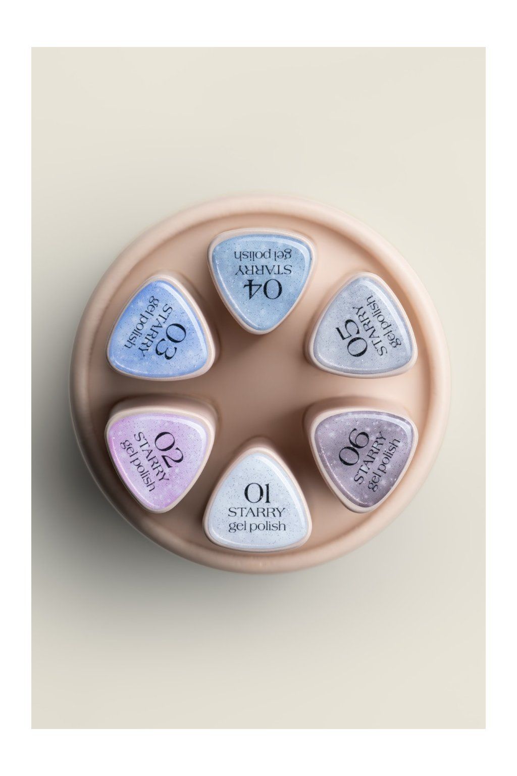 STARRY COLLECTION je exkluzívny set 6 luxusných géllakov s bohatou pigmentáciou a ultra jemnými mikrotrblietkami, ktoré zachytávajú svetlo z každého uhla a vytvárajú intenzívny, hlboký lesk. Farba je plná, rovnomerná a dodáva manikúre elegantný, profesionálny vzhľad s dlhotrvajúcim efektom.